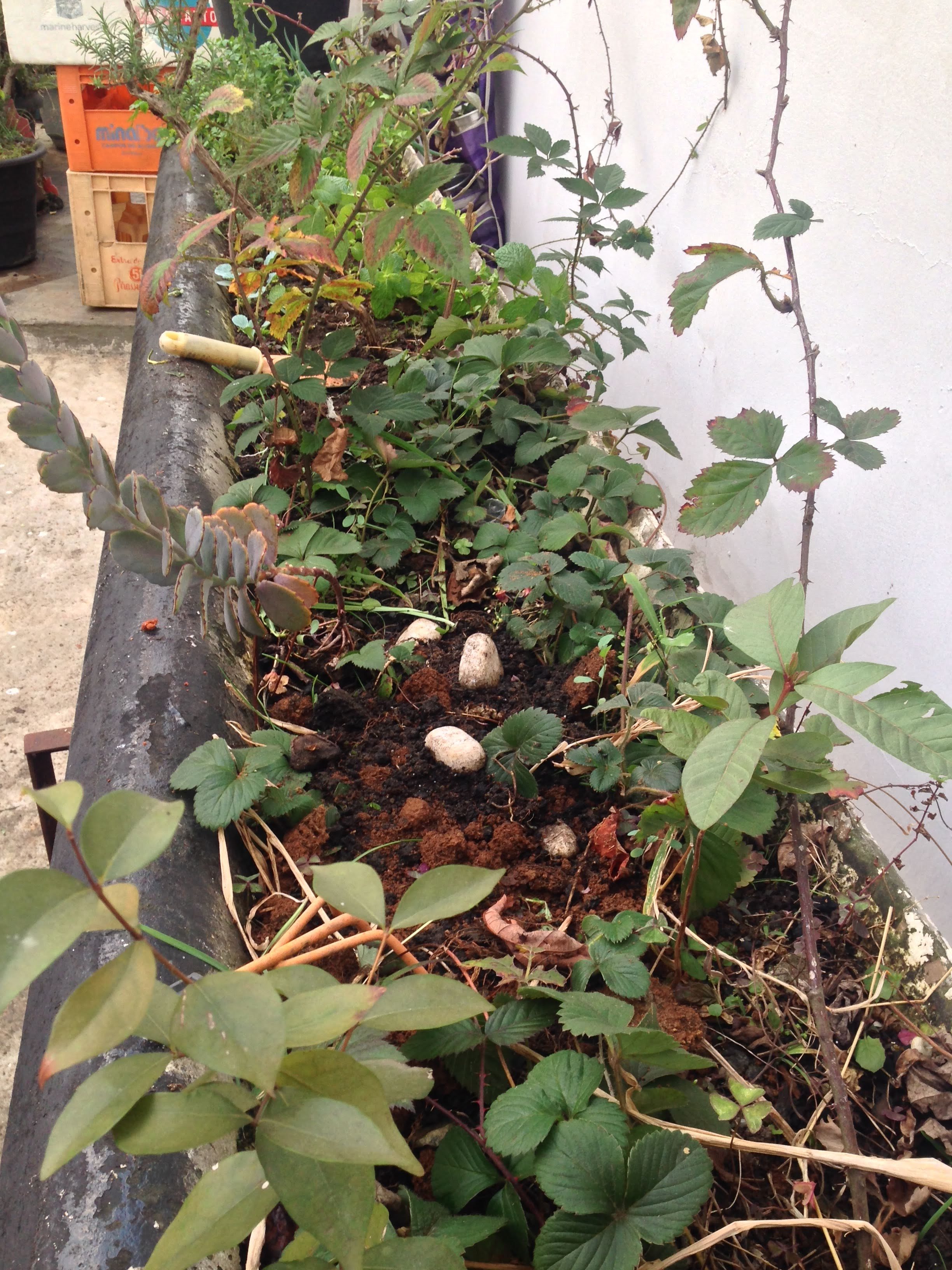 Junto com a horta, Lívia fez uma composteira doméstica, onde consegue reaproveitar o que sai de casca da cozinha. Infelizmente a casca da berinjela não pode ir pra lá porque é muito ácida.