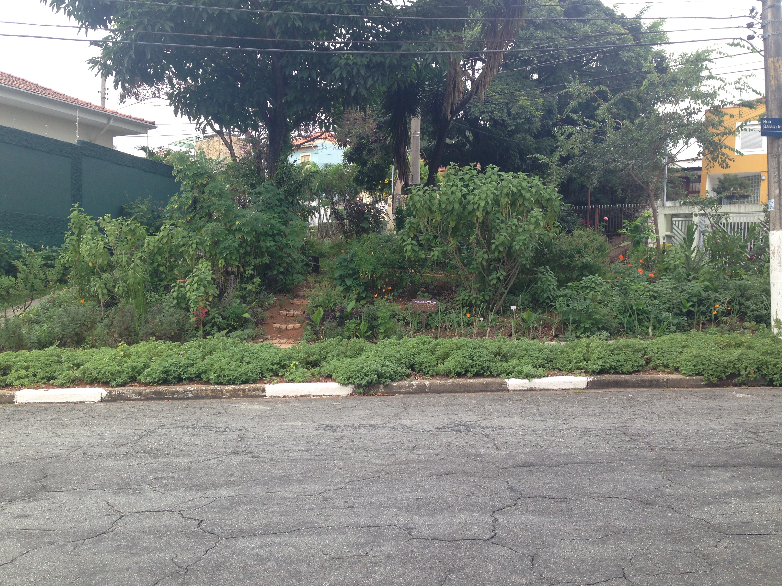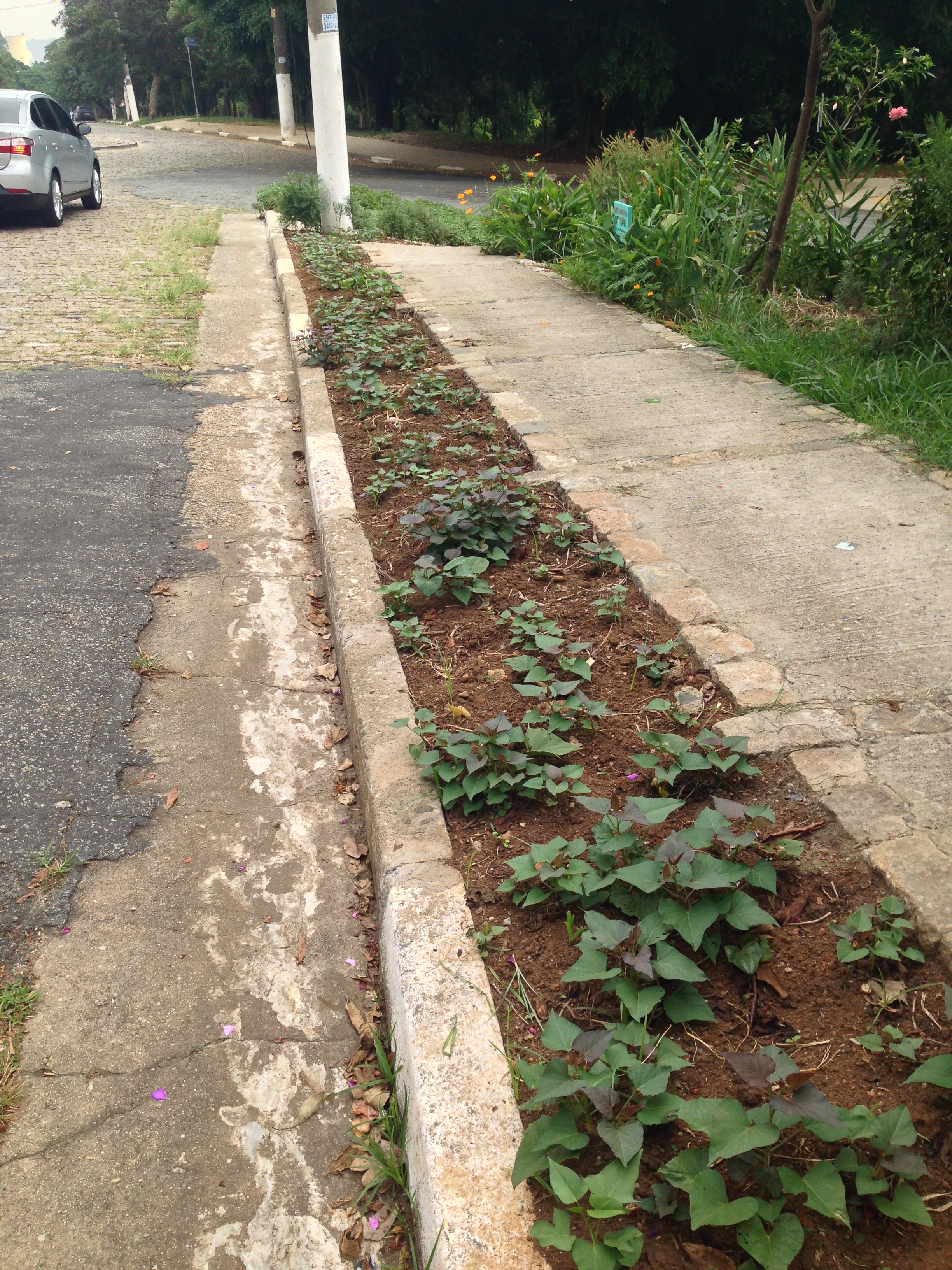 Funciona assim: você se inscreve e, no dia marcado, encontra a Neide na casa dela. Depois de um papo inicial, todo mundo sai com sua cestinha, sacola, embornal ou seja lá o que for para, literalmente, caçar PANC pelas ruas do bairro. A primeira parada certamente será em algum canteiro da calçada entre a casa da Neide e a horta comunitária do bairro. Neste minúsculo espaço ela pode te apontar algumas PANC e, talvez, mostrar o que secou porque alguém jogou “mata mato” pra se livrar daquele verdinho (aconteceu no dia em que eu participei desta oficina).