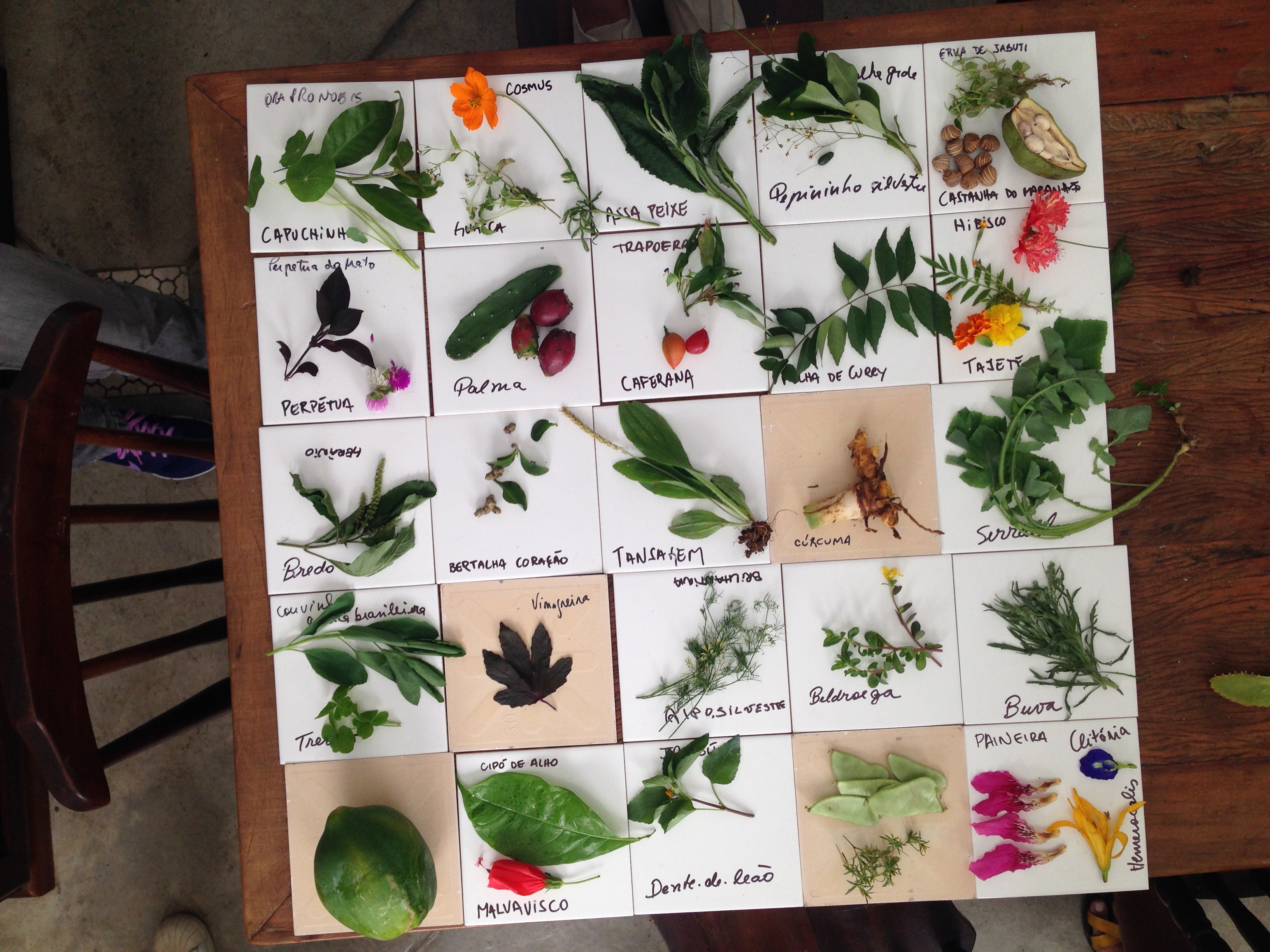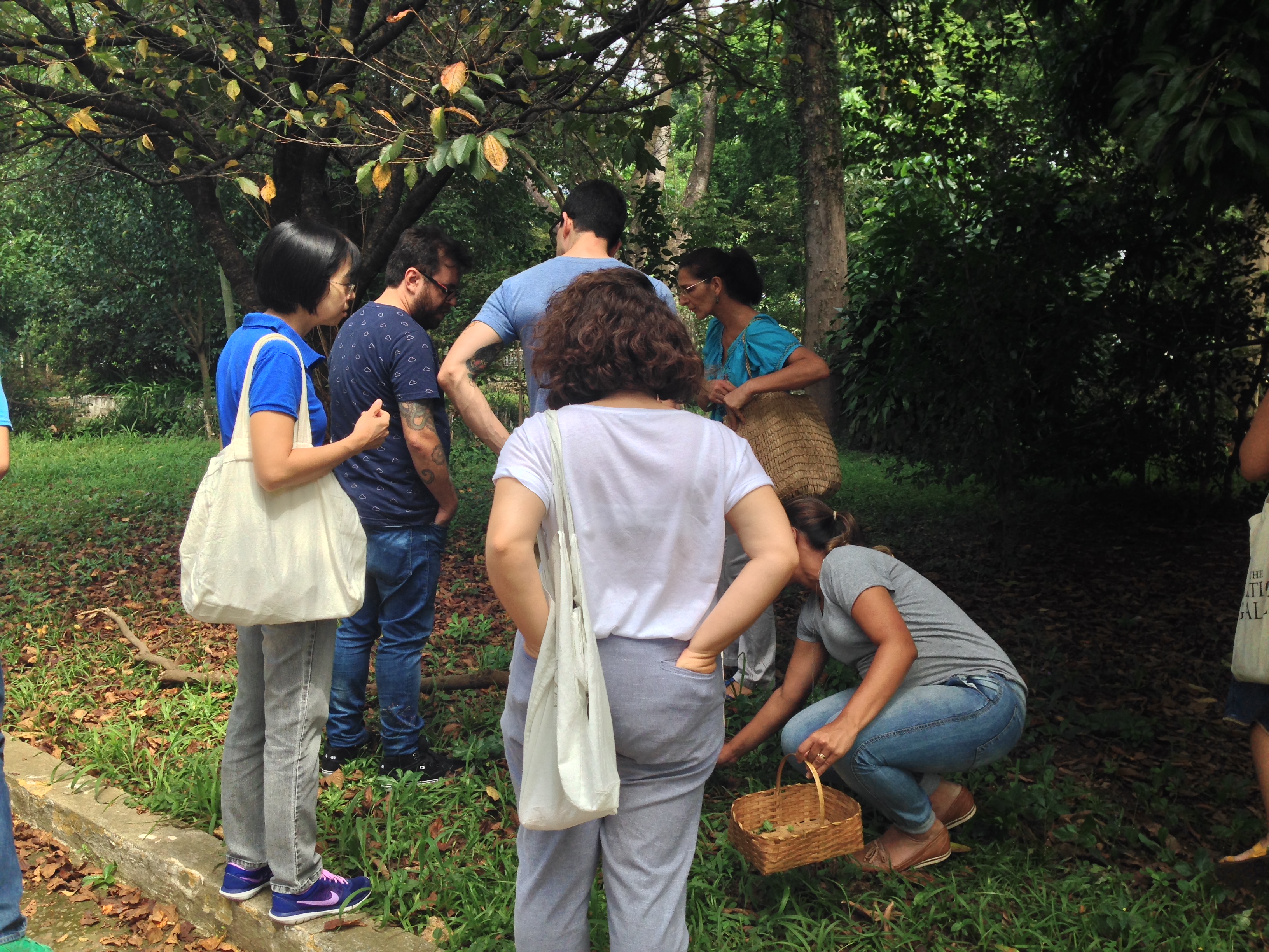 Depois da horta, é bom preparar os músculos e as articulações para uma longa caminhada. Praças, calçadas e canteiros são escaneados por Neide e seu grupo. As plantas colhidas são levadas pra casa dela, onde se faz de forma mais didática a identificação. No dia em que fiz o passeio, colhemos pepininho, caferana, palma, hibisco, buva, cosmus, malvavisco etc. Depois, muita coisa vai pra panela e o almoço é servido. Quem quiser pode levar mudas, sementes, folhas e flores para casa. Eu trouxe cúrcuma colhida no canteiro de uma rotatória e, neste ano, vou ter a minha segunda colheita!